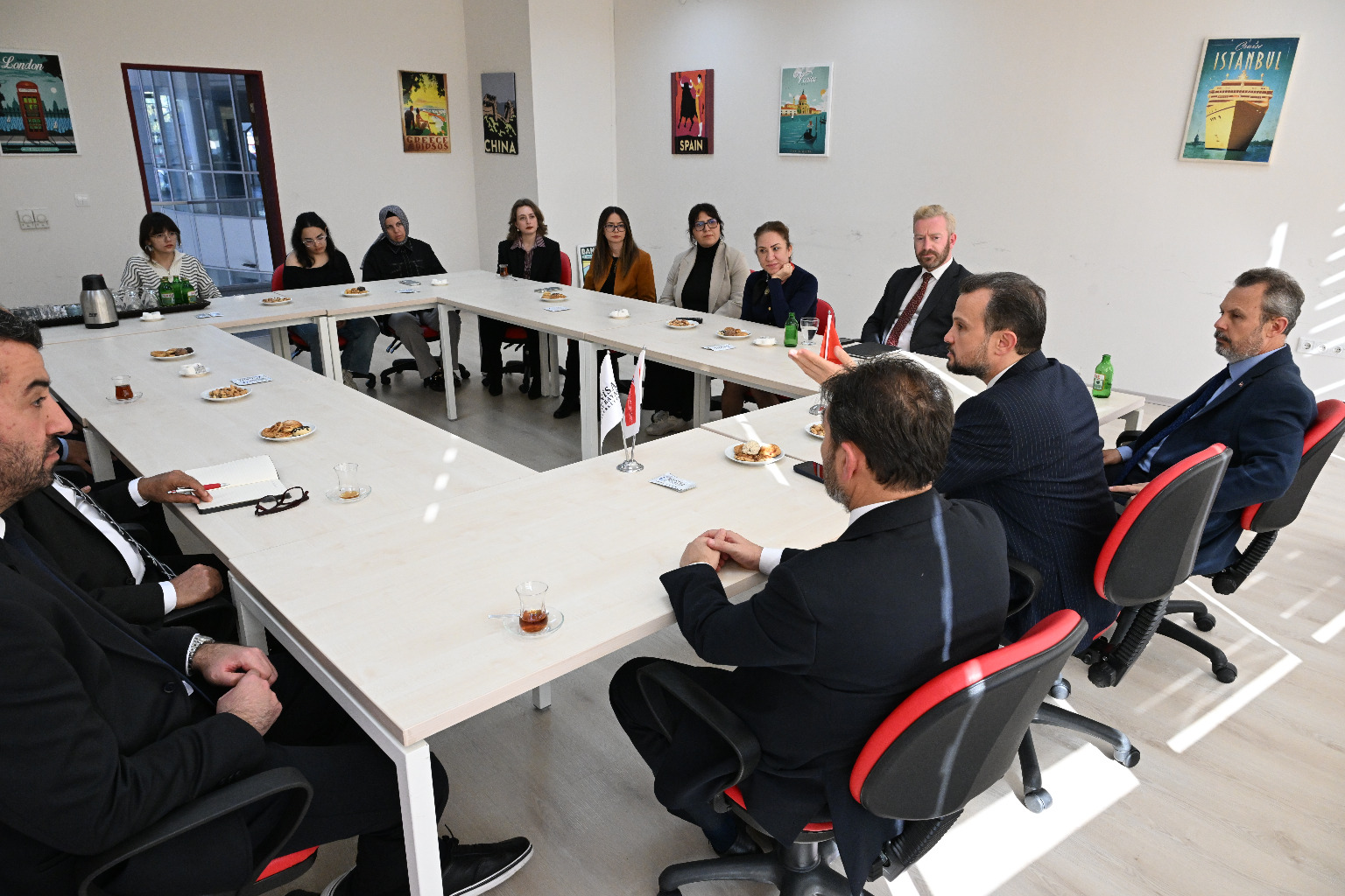 Program sonunda Şeref Defteri’ni imzalayan Başkan Astarcı, daha sonra Uluslararası İlişkiler Koordinatörlüğü ekibi ile bir toplantı gerçekleştirdi. Rektör Yardımcısı Prof. Dr. Ahmet Çetin, Uluslararası İlişkiler Koordinatörü Prof. Dr. Halil Babacan, İşletme Fakültesi Dekanı Prof. Dr. Hatice Yurtsever ve Erasmus Kurum Koordinatörü Öğr. Gör. İpek Yeniay Hatipoğlu’nun da yer aldığı toplantıda, üniversitenin yürüttüğü değişim faaliyetleri ve Erasmus projeleri hakkında değerlendirmelerde bulunuldu.